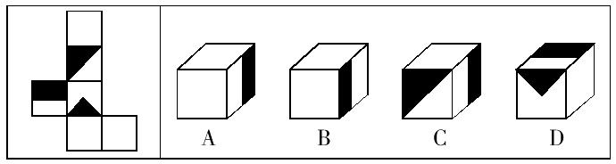 3、左邊給定的是紙盒的外表面,右邊哪一項能由它折疊而成?