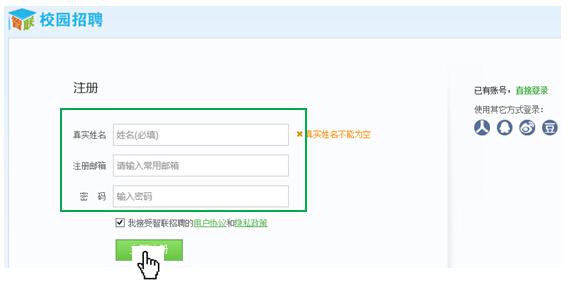 2、前期未注冊智聯招聘賬號的同學