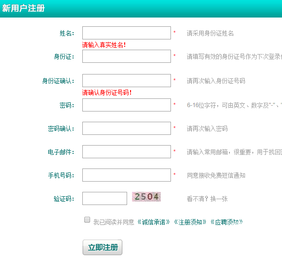 二、進入系統后,未注冊的考生需要先點擊右上角注冊,使用真實姓名及身份證件號進行注冊。