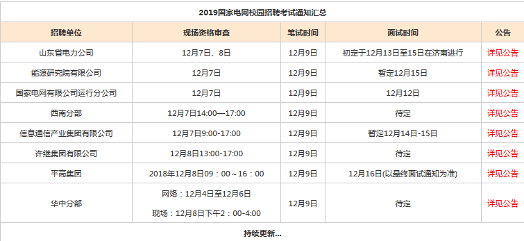 2019國家電網校園招聘將在12月9日進行筆試,12月7日進行現場資格審查。2019國家電網校園招聘考試通知匯總,希望可以幫助大家順利報考。