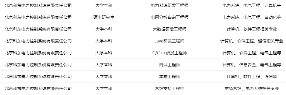 北京科東電力控制系統有限責任公司招聘匯總