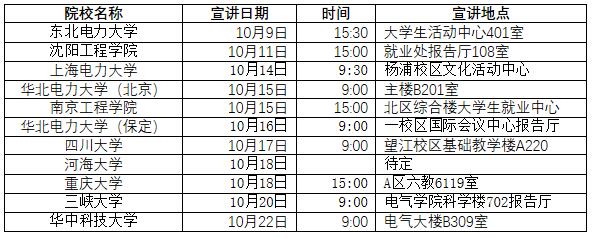 本批校園招聘將于10月9日開始組織開展,具體行程如下,如有變更,在相關院校網站更新。符合招聘條件的其他院校畢業生,可就近選擇參加。