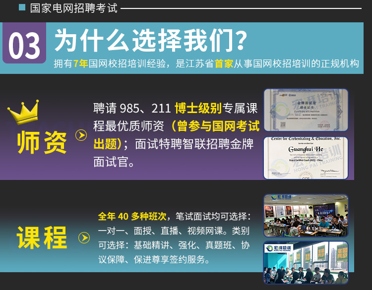 宏湃國有企業培訓致力在國家電網領域為個人及機構提供優質的教育培訓服務。尤其是在國家電網校園招聘的企業新員工崗前培訓等項目上取得了可喜的成績。