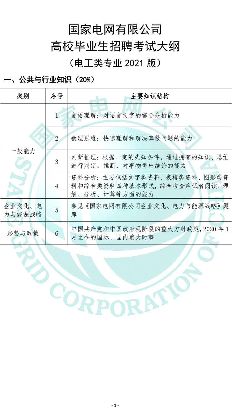 2021國家電網有限公司高校畢業生招聘考試大綱(電工類專業)