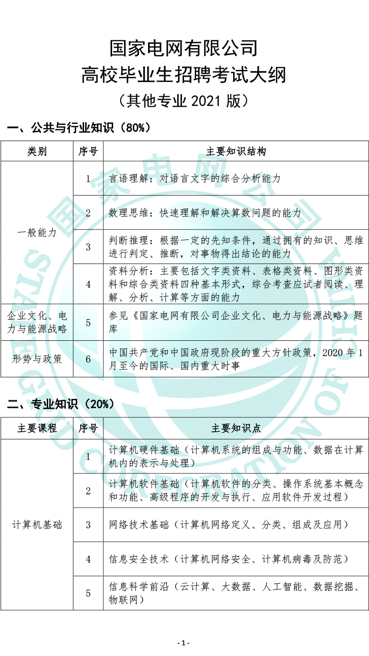 2021國家電網有限公司高校畢業生招聘考試大綱(其他專業)