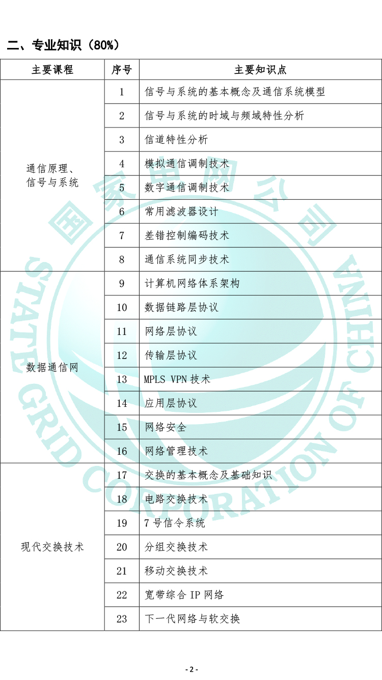 2021國家電網有限公司高校畢業生招聘考試大綱(通信類專業)