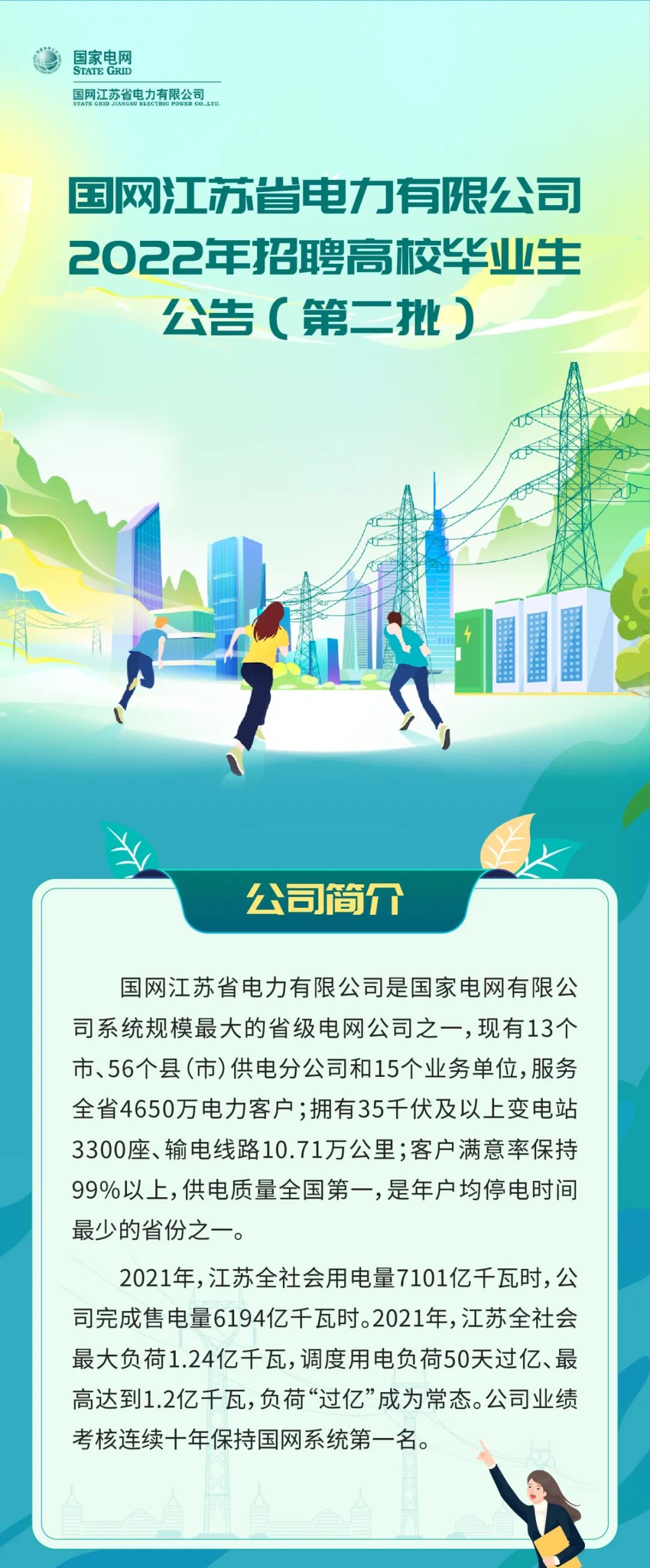 國網江蘇省電力有限公司2022年招聘高校畢業生公告(第二批)