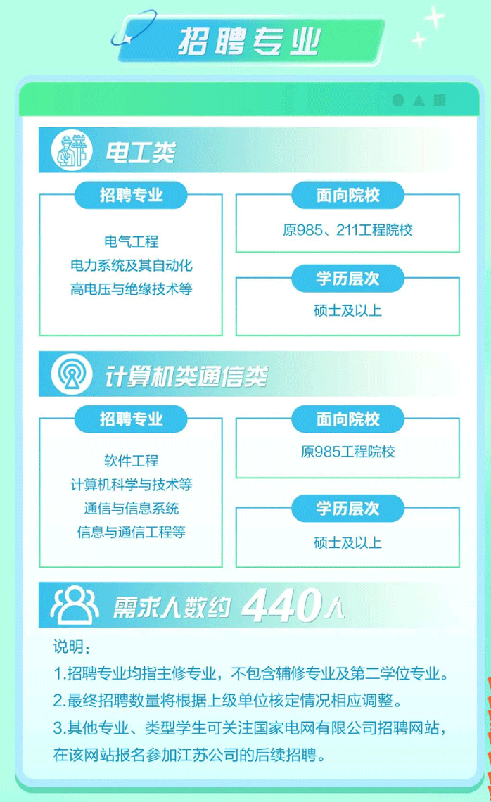 2024屆江蘇電網校招提前批公告已出,相較于其他省份來說,對于學校的要求較高,一般本碩均電的雙9雙211穩定通過,本電力院校碩2以上也是比較穩定的。