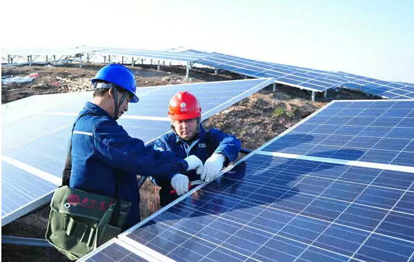 電網(wǎng)員工服務(wù)新能源項(xiàng)目并網(wǎng)。