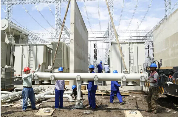 中國(guó)和埃塞俄比亞施工人員在500千伏HOLETA變電站施工。