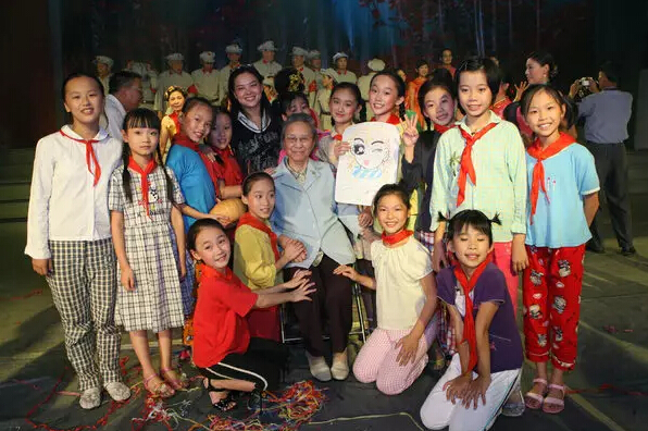 高君芷與資助的“春蕾班”代表合影。