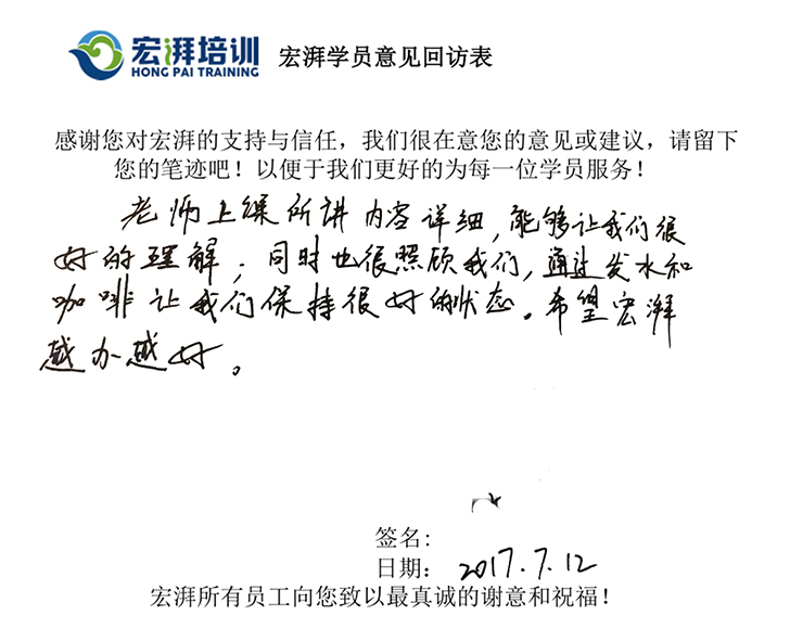 >>>更多成功學員課后感言